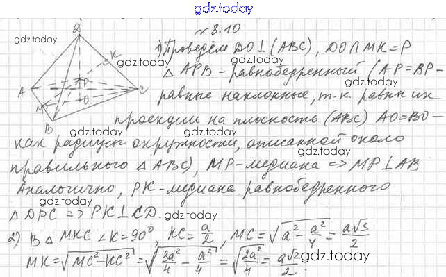 Ответы к Решение к §8 8.10 Учебнику по Геометрии для 10 класса Мерзляк, Номировский Базовый уровень Вентана-граф Алгоритм успеха 2017