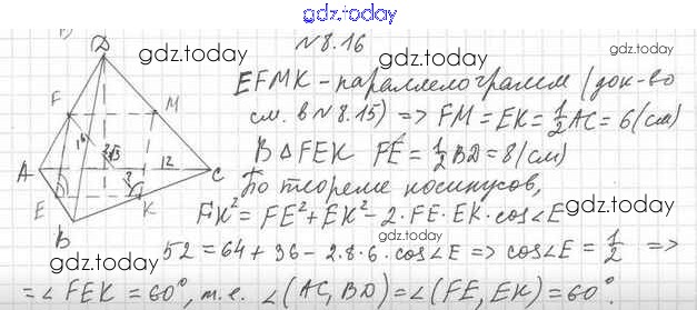 На страницах сайта gdz.today вы найдете учебный и вспомогательный материал, направленный на улучшения знаний школьной программы. ГДЗ - онлайн мир знаний Решение к §8 8.16 Учебнику по Геометрии для 10 класса Мерзляк, Номировский Базовый уровень Вентана-граф Алгоритм успеха 2017