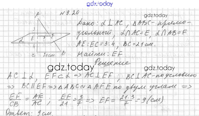 Ответы к Решение к §9 9.20 Учебнику по Геометрии для 10 класса Мерзляк, Номировский Базовый уровень Вентана-граф Алгоритм успеха 2017