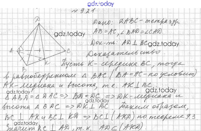 Ответы к Решение к §9 9.21 Учебнику по Геометрии для 10 класса Мерзляк, Номировский Базовый уровень Вентана-граф Алгоритм успеха 2017