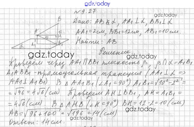 Ответы к Решение к §9 9.27 Учебнику по Геометрии для 10 класса Мерзляк, Номировский Базовый уровень Вентана-граф Алгоритм успеха 2017