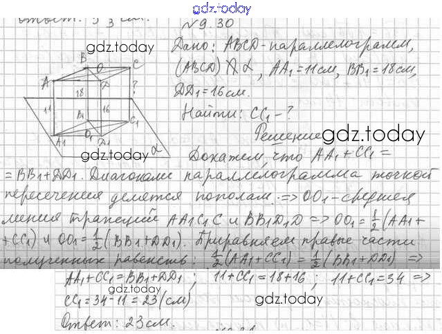 Ответы к Решение к §9 9.30 Учебнику по Геометрии для 10 класса Мерзляк, Номировский Базовый уровень Вентана-граф Алгоритм успеха 2017