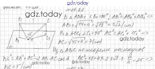 Ответы к Решение к §10 10.26 Учебнику по Геометрии для 10 класса Мерзляк, Номировский Базовый уровень Вентана-граф Алгоритм успеха 2017