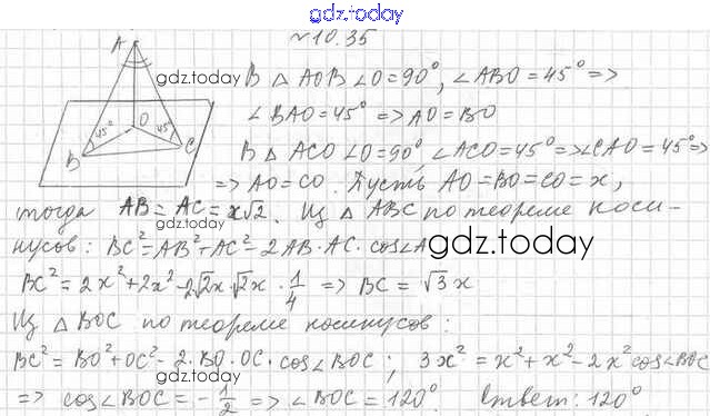 Ответы к Решение к §10 10.35 Учебнику по Геометрии для 10 класса Мерзляк, Номировский Базовый уровень Вентана-граф Алгоритм успеха 2017