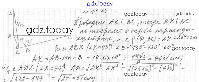 На страницах сайта gdz.today вы найдете учебный и вспомогательный материал, направленный на улучшения знаний школьной программы. ГДЗ - онлайн мир знаний Решение к §11 11.13 Учебнику по Геометрии для 10 класса Мерзляк, Номировский Базовый уровень Вентана-граф Алгоритм успеха 2017
