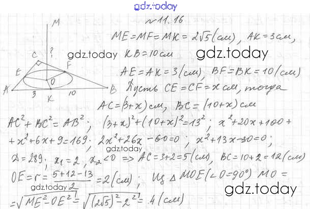 Ответы к Решение к §11 11.16 Учебнику по Геометрии для 10 класса Мерзляк, Номировский Базовый уровень Вентана-граф Алгоритм успеха 2017