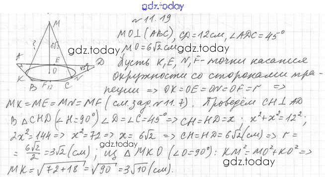 Ответы к Решение к §11 11.19 Учебнику по Геометрии для 10 класса Мерзляк, Номировский Базовый уровень Вентана-граф Алгоритм успеха 2017