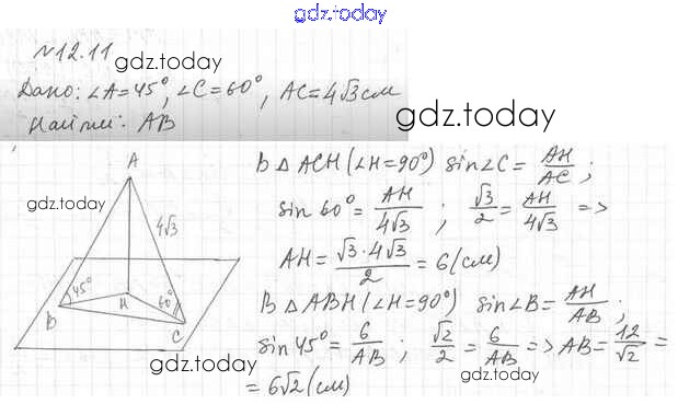Ответы к Решение к §12 12.11 Учебнику по Геометрии для 10 класса Мерзляк, Номировский Базовый уровень Вентана-граф Алгоритм успеха 2017