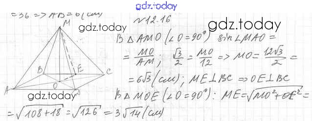 Ответы к Решение к §12 12.16 Учебнику по Геометрии для 10 класса Мерзляк, Номировский Базовый уровень Вентана-граф Алгоритм успеха 2017