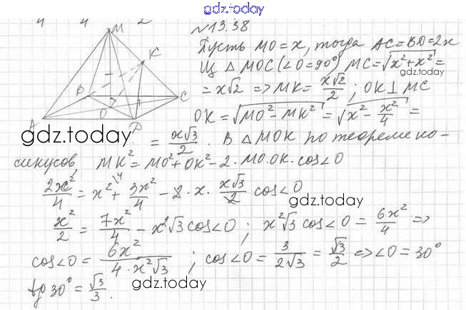 Ответы к Решение к §13 13.38 Учебнику по Геометрии для 10 класса Мерзляк, Номировский Базовый уровень Вентана-граф Алгоритм успеха 2017