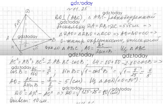 Ответы к Решение к §11 11.25 Учебнику по Геометрии для 10 класса Мерзляк, Номировский Углубленный уровень Вентана-граф Алгоритм успеха 2021