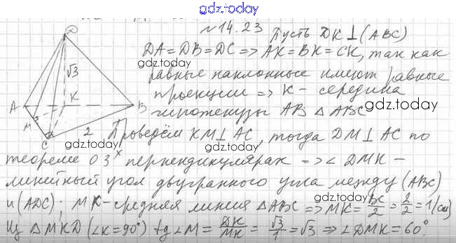 Ответы к Решение к §14 14.23 Учебнику по Геометрии для 10 класса Мерзляк, Номировский Углубленный уровень Вентана-граф Алгоритм успеха 2021