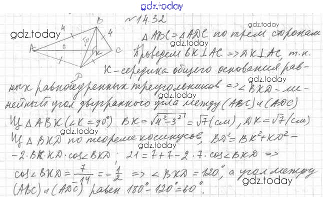 Ответы к Решение к §14 14.32 Учебнику по Геометрии для 10 класса Мерзляк, Номировский Углубленный уровень Вентана-граф Алгоритм успеха 2021