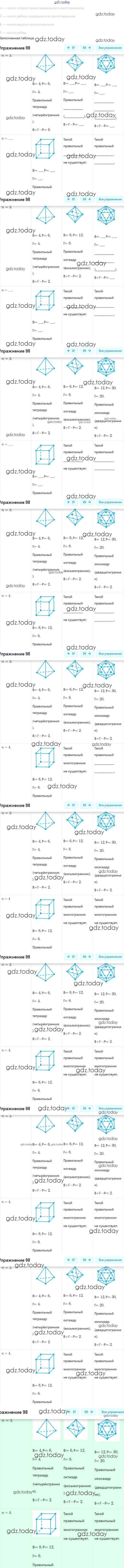 На страницах сайта gdz.today вы найдете учебный и вспомогательный материал, направленный на улучшения знаний школьной программы. ГДЗ - онлайн мир знаний Решение. Задачи 98 Рабочей тетради по Геометрии для 10 класса Глазков, Юдина Базовый и углубленный уровень Просвещение МГУ - школе 2018