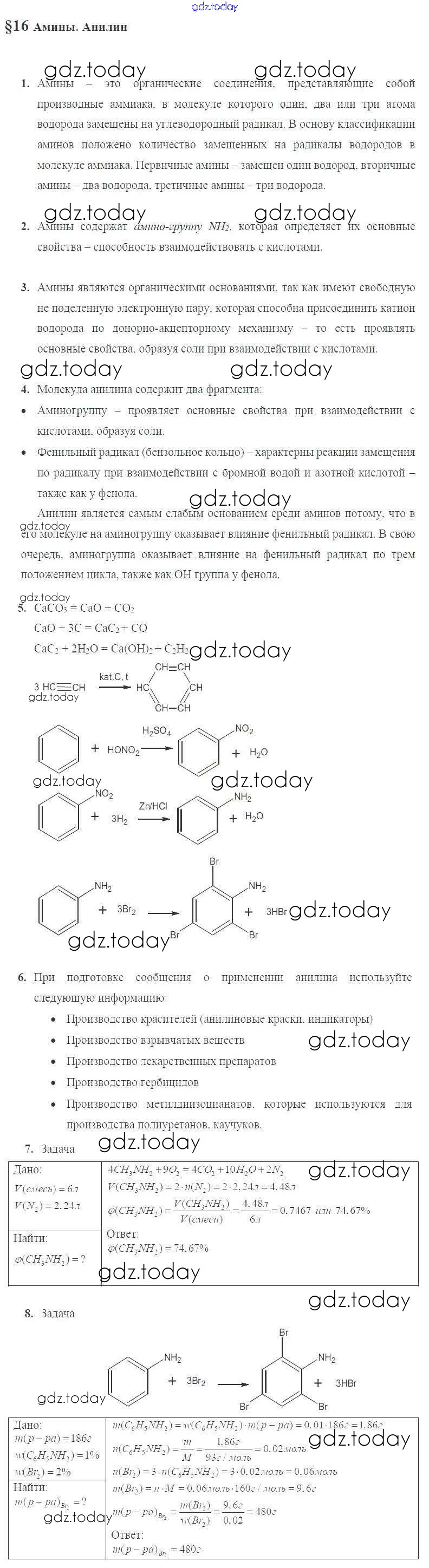 Ответы к Решение к параграфам §16 Учебнику по Химии для 10 класса Габриелян Базовый уровень Дрофа Вертикаль 2015