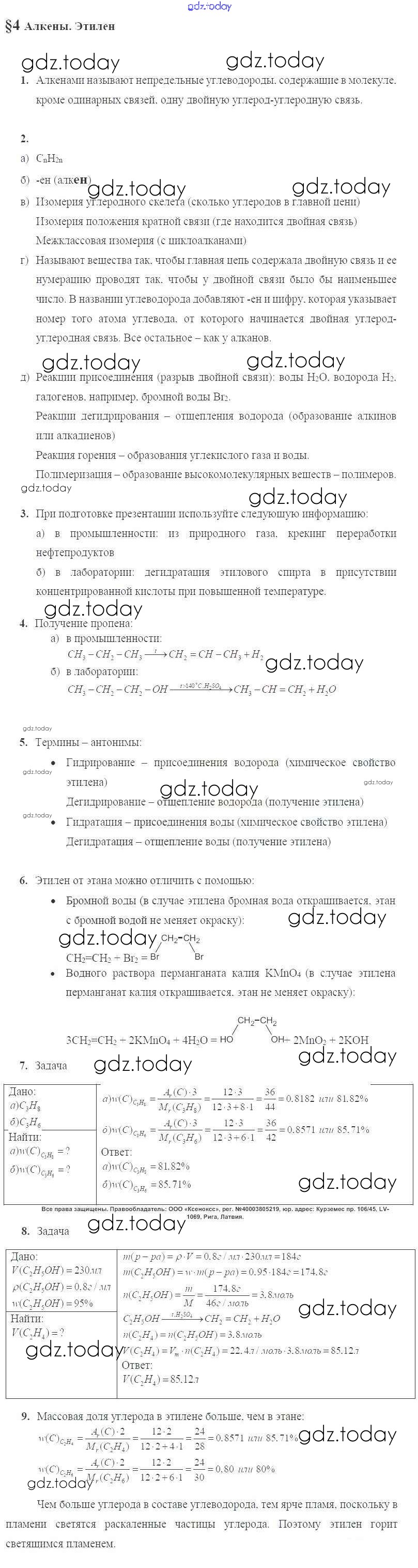 Ответы к Решение к параграфам §4 Учебнику по Химии для 10 класса Габриелян Базовый уровень Дрофа Вертикаль 2015