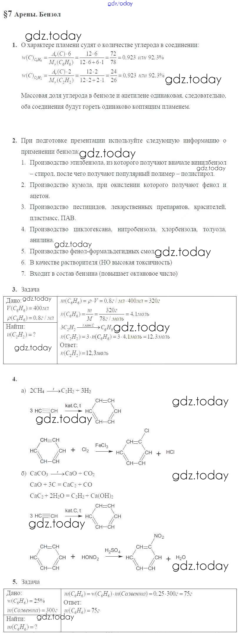 Ответы к Решение к параграфам §7 Учебнику по Химии для 10 класса Габриелян Базовый уровень Дрофа Вертикаль 2015