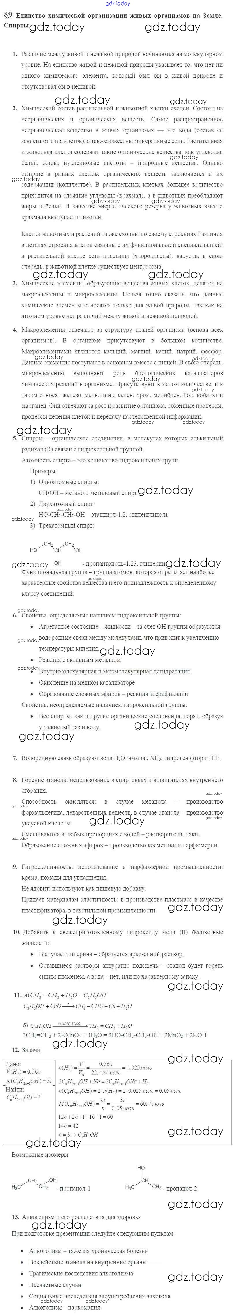 Ответы к Решение к параграфам §9 Учебнику по Химии для 10 класса Габриелян Базовый уровень Дрофа Вертикаль 2015