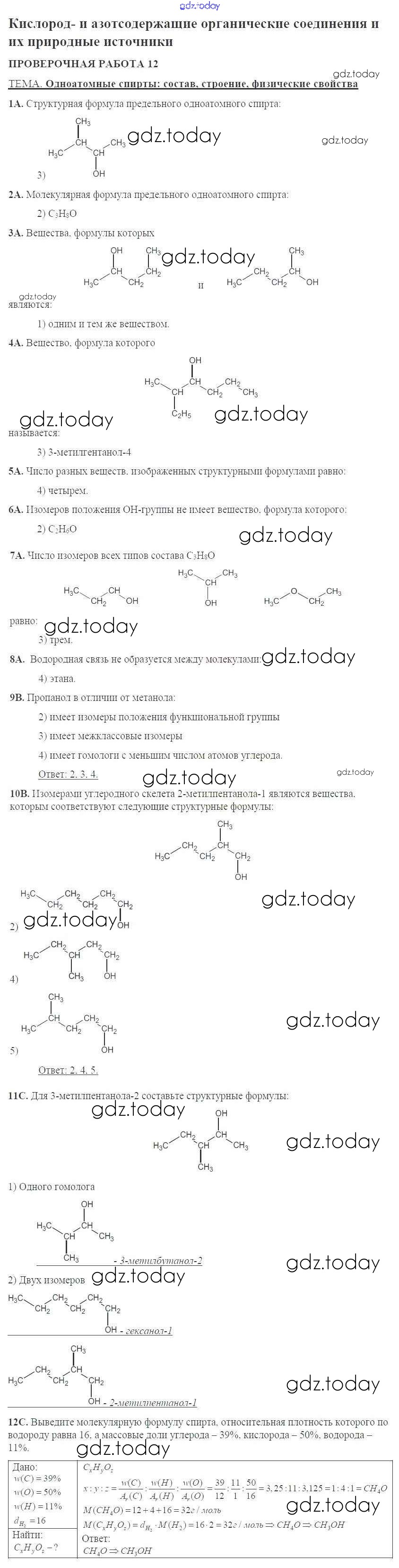 Ответы к Решение к проверочным работам 12 Тетради для оценки качества знаний по Химии для 10 класса Габриелян, Купцова Дрофа 2014