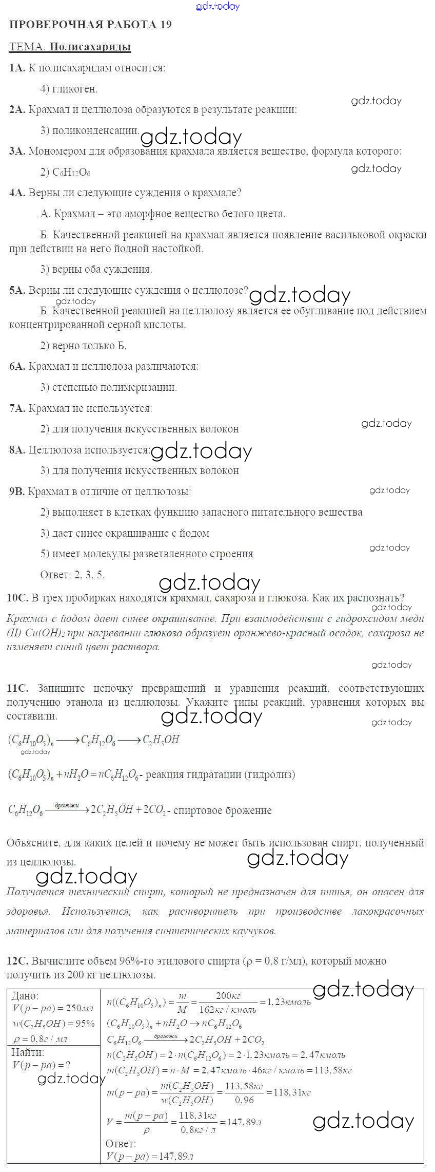 Ответы к Решение к проверочным работам 19 Тетради для оценки качества знаний по Химии для 10 класса Габриелян, Купцова Дрофа 2014