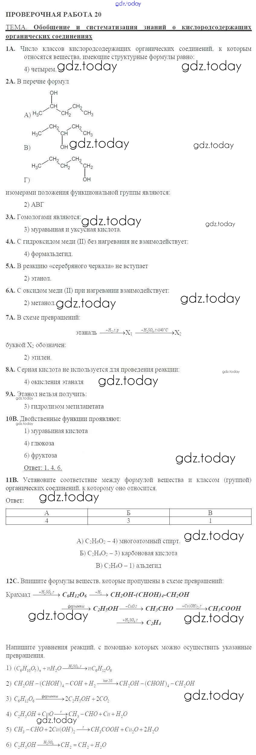На страницах сайта gdz.today вы найдете учебный и вспомогательный материал, направленный на улучшения знаний школьной программы. ГДЗ - онлайн мир знаний Решение к проверочным работам 20 Тетради для оценки качества знаний по Химии для 10 класса Габриелян, Купцова Дрофа 2014