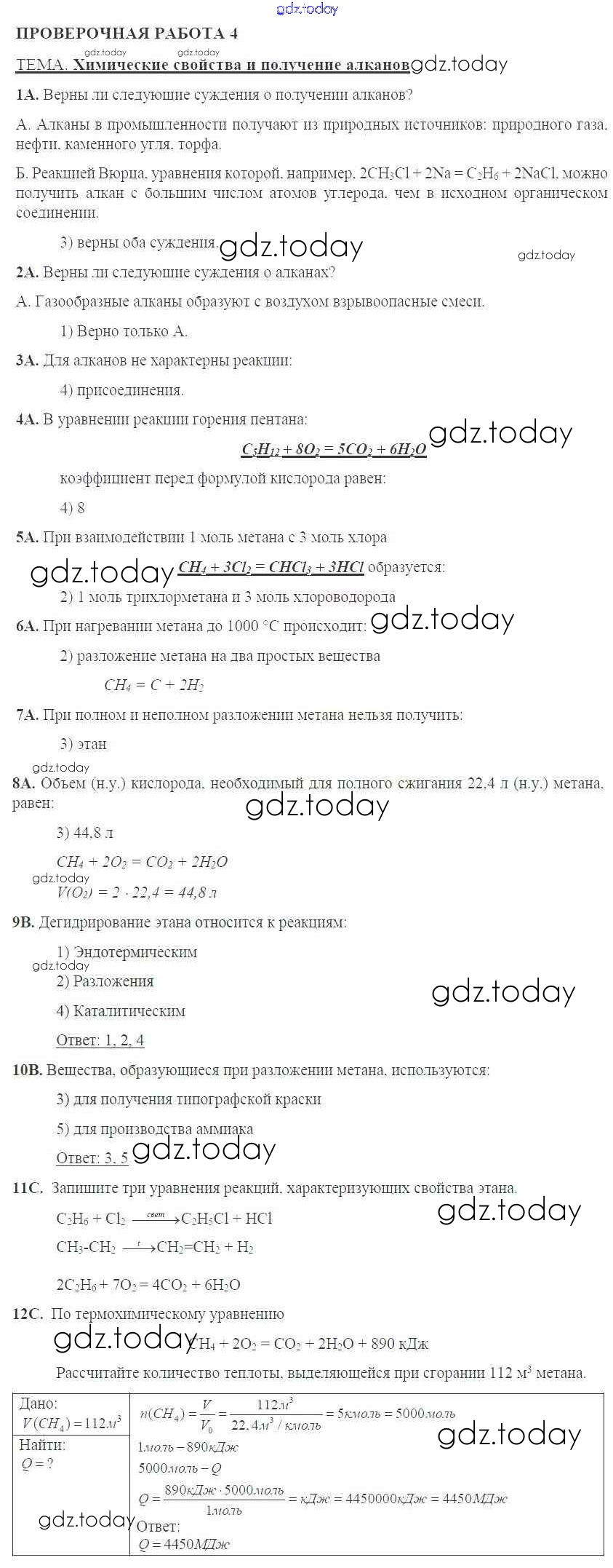 Ответы к Решение к проверочным работам 4 Тетради для оценки качества знаний по Химии для 10 класса Габриелян, Купцова Дрофа 2014