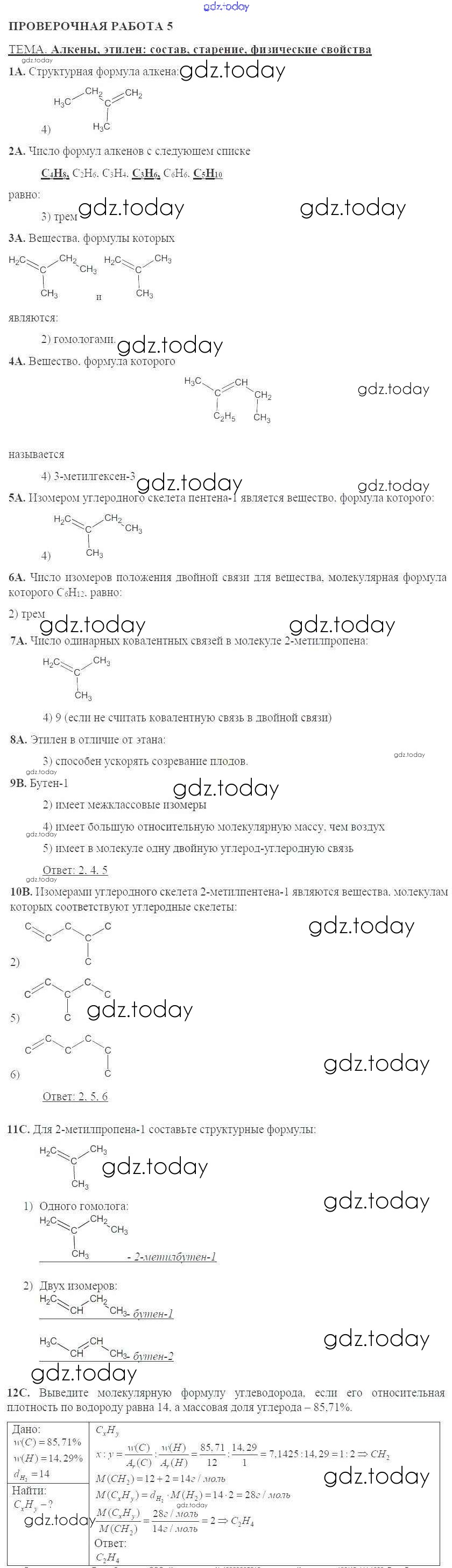 Ответы к Решение к проверочным работам 5 Тетради для оценки качества знаний по Химии для 10 класса Габриелян, Купцова Дрофа 2014