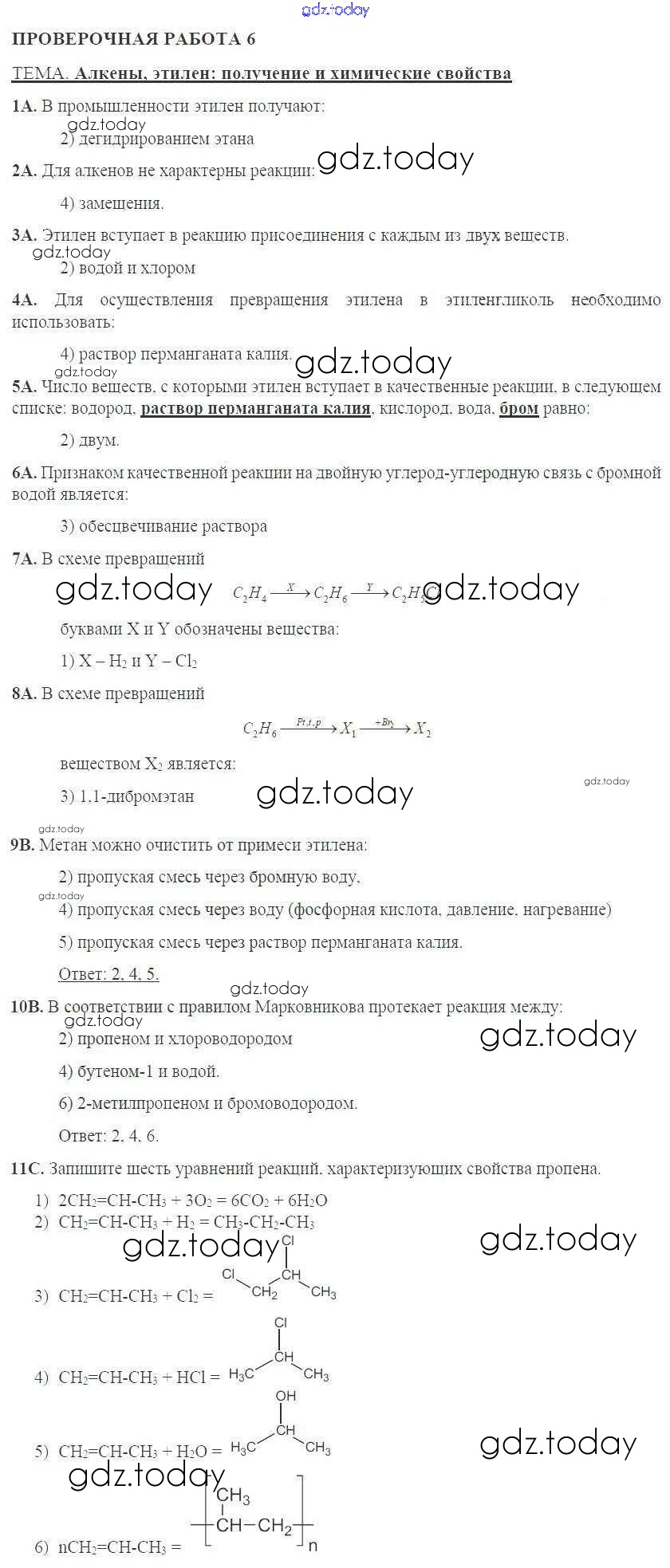 Ответы к Решение к проверочным работам 6 Тетради для оценки качества знаний по Химии для 10 класса Габриелян, Купцова Дрофа 2014