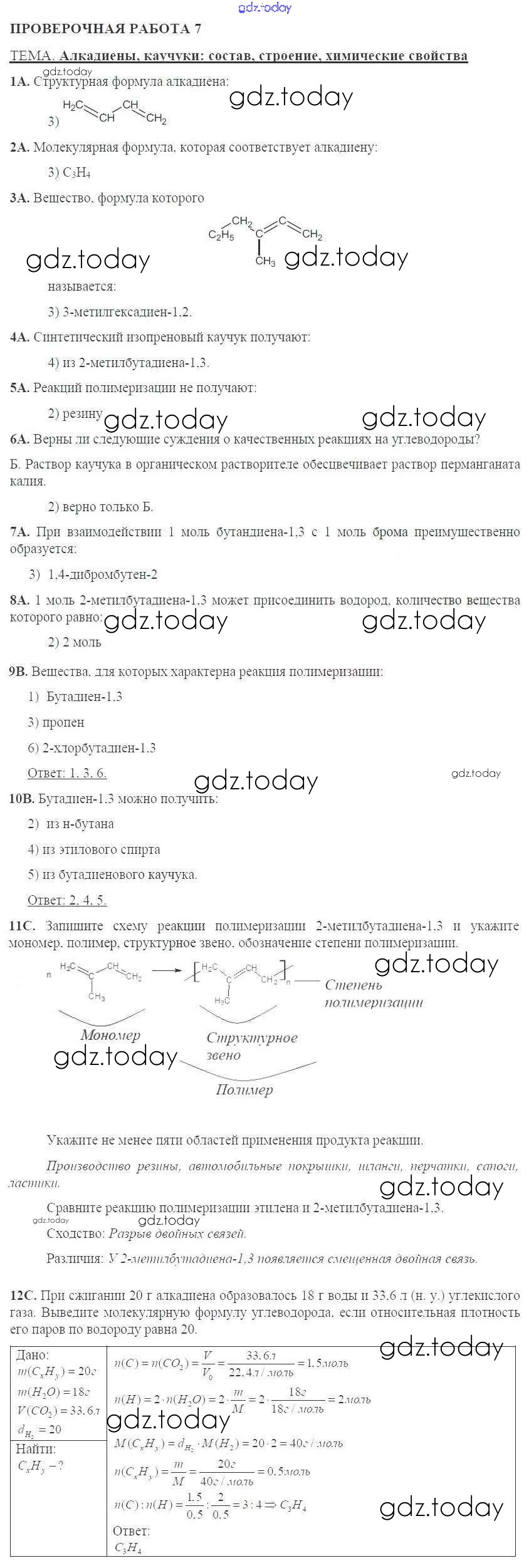 Ответы к Решение к проверочным работам 7 Тетради для оценки качества знаний по Химии для 10 класса Габриелян, Купцова Дрофа 2014