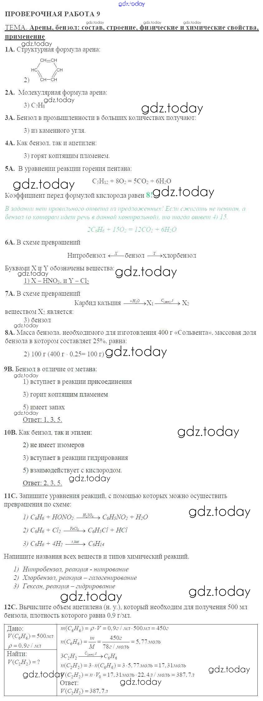 Ответы к Решение к проверочным работам 9 Тетради для оценки качества знаний по Химии для 10 класса Габриелян, Купцова Дрофа 2014