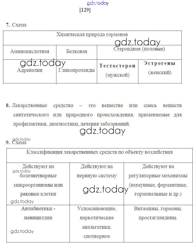 Ответы к Страницы (решение) 129 Рабочей тетради по Химии для 10 класса Габриелян, Сладков Базовый уровень Дрофа Вертикаль 2017