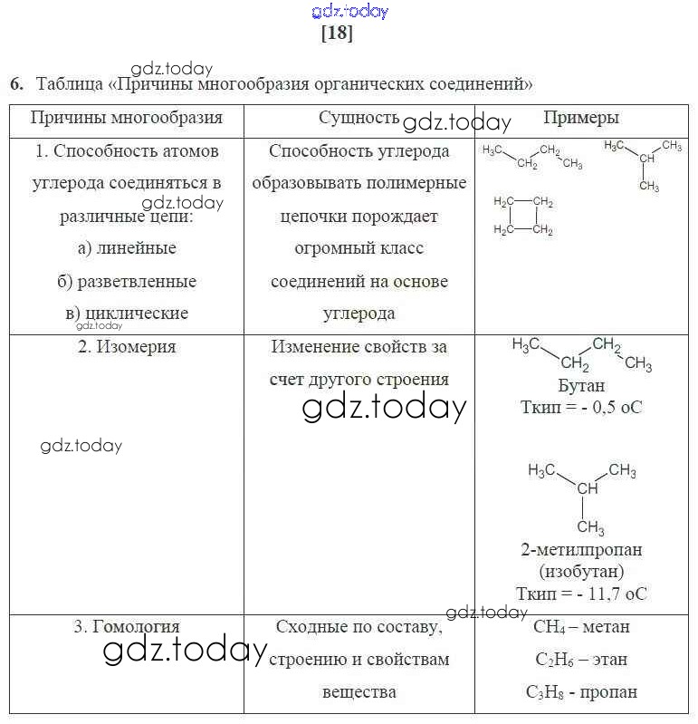 Ответы к Страницы (решение) 18 Рабочей тетради по Химии для 10 класса Габриелян, Сладков Базовый уровень Дрофа Вертикаль 2017