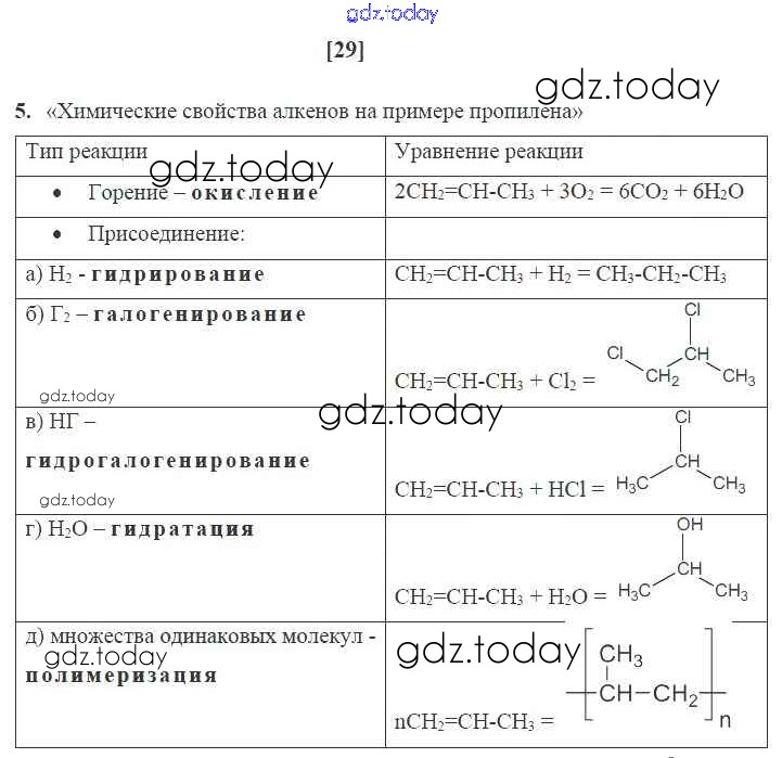 Ответы к Страницы (решение) 29 Рабочей тетради по Химии для 10 класса Габриелян, Сладков Базовый уровень Дрофа Вертикаль 2017