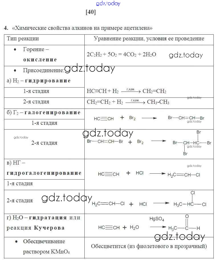 Ответы к Страницы (решение) 40 Рабочей тетради по Химии для 10 класса Габриелян, Сладков Базовый уровень Дрофа Вертикаль 2017
