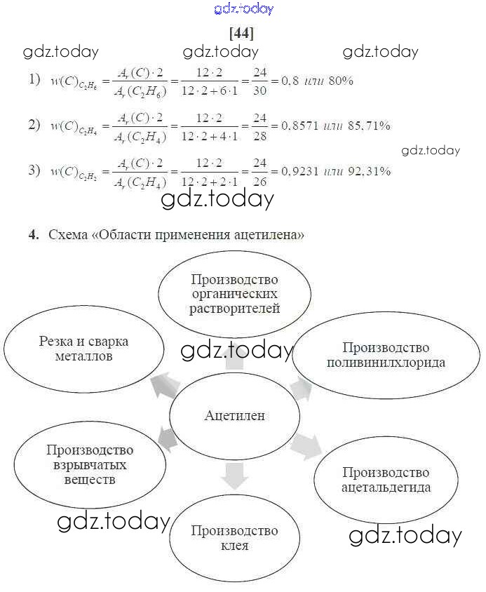 Ответы к Страницы (решение) 44 Рабочей тетради по Химии для 10 класса Габриелян, Сладков Базовый уровень Дрофа Вертикаль 2017