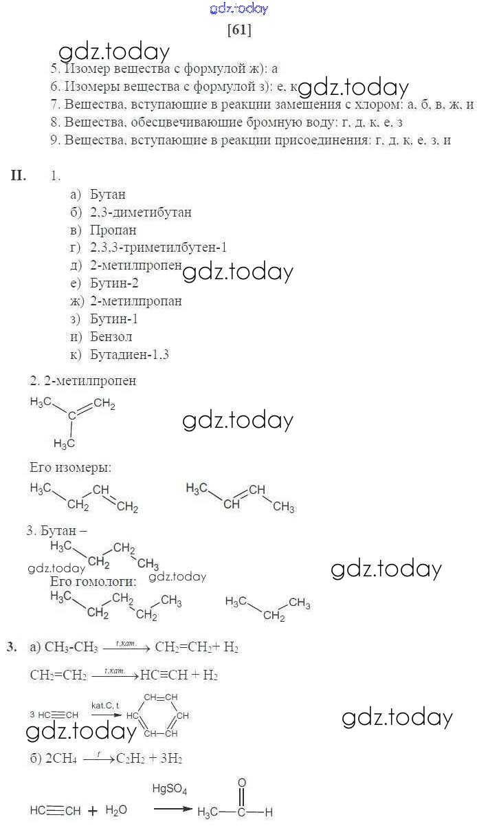 На страницах сайта gdz.today вы найдете учебный и вспомогательный материал, направленный на улучшения знаний школьной программы. ГДЗ - онлайн мир знаний Страницы (решение) 61 Рабочей тетради по Химии для 10 класса Габриелян, Сладков Базовый уровень Дрофа Вертикаль 2017