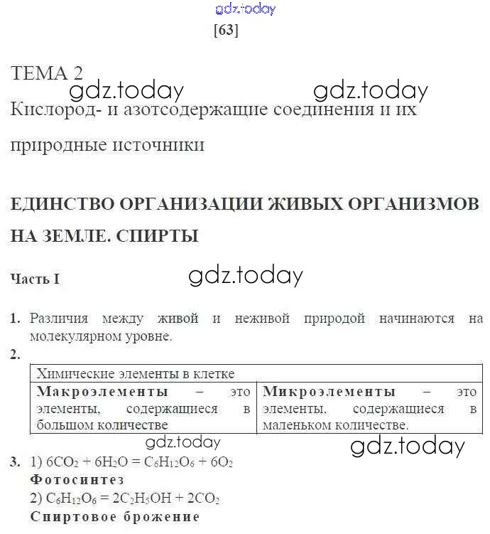 Ответы к Страницы (решение) 63 Рабочей тетради по Химии для 10 класса Габриелян, Сладков Базовый уровень Дрофа Вертикаль 2017
