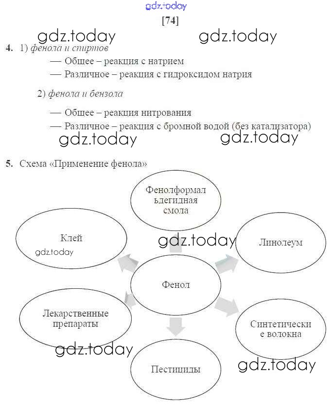 Ответы к Страницы (решение) 74 Рабочей тетради по Химии для 10 класса Габриелян, Сладков Базовый уровень Дрофа Вертикаль 2017