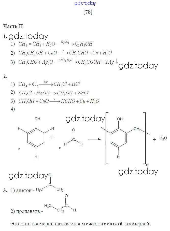 Ответы к Страницы (решение) 78 Рабочей тетради по Химии для 10 класса Габриелян, Сладков Базовый уровень Дрофа Вертикаль 2017