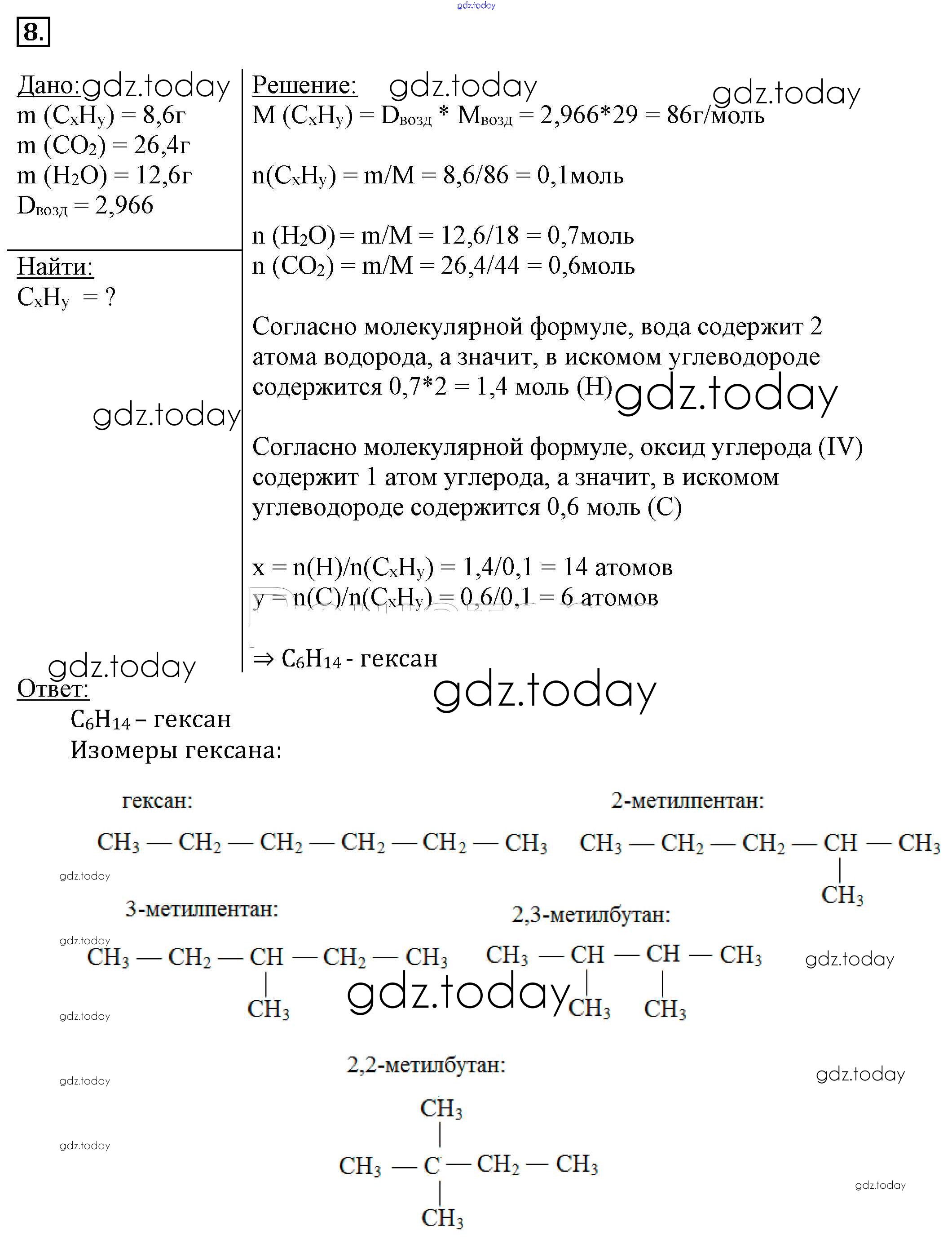 Ответы к Подумайте ответьте выполните Решение к §8 8 Учебнику по Химии для 10 класса Рудзитис, Фельдман Просвещение 2014