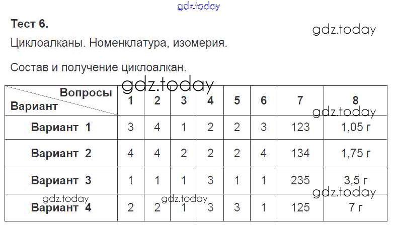На страницах сайта gdz.today вы найдете учебный и вспомогательный материал, направленный на улучшения знаний школьной программы. ГДЗ - онлайн мир знаний Решение к тестам 6 Тестам по Химии для 10 класса Боровских Экзамен УМК 2013
