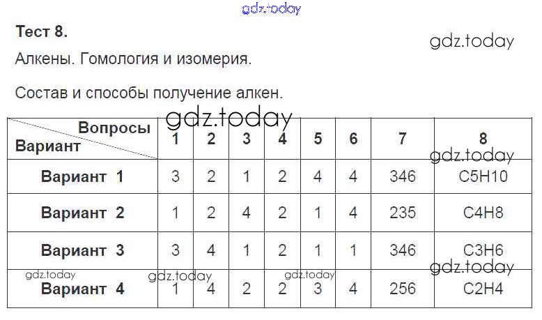 На страницах сайта gdz.today вы найдете учебный и вспомогательный материал, направленный на улучшения знаний школьной программы. ГДЗ - онлайн мир знаний Решение к тестам 8 Тестам по Химии для 10 класса Боровских Экзамен УМК 2013