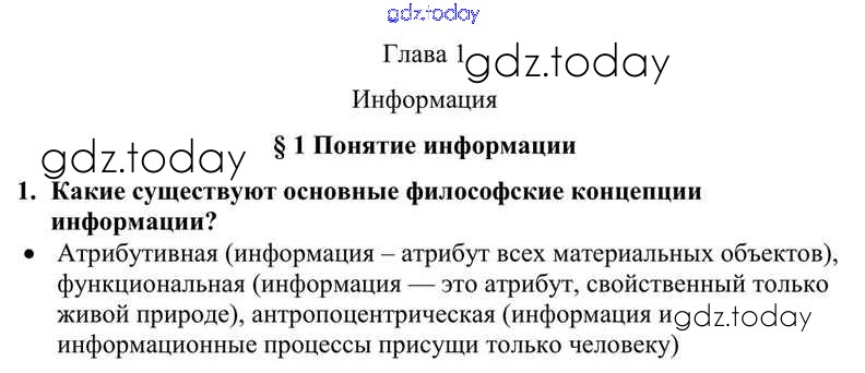 На страницах сайта gdz.today вы найдете учебный и вспомогательный материал, направленный на улучшения знаний школьной программы. ГДЗ - онлайн мир знаний Решение к §1. Понятие информации 1 Учебнику по Информатике для 10 класса Семакин, Хеннер Базовый уровень Бином 2017