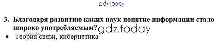 На страницах сайта gdz.today вы найдете учебный и вспомогательный материал, направленный на улучшения знаний школьной программы. ГДЗ - онлайн мир знаний Решение к §1. Понятие информации 3 Учебнику по Информатике для 10 класса Семакин, Хеннер Базовый уровень Бином 2017
