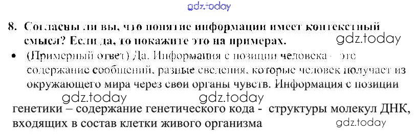На страницах сайта gdz.today вы найдете учебный и вспомогательный материал, направленный на улучшения знаний школьной программы. ГДЗ - онлайн мир знаний Решение к §1. Понятие информации 8 Учебнику по Информатике для 10 класса Семакин, Хеннер Базовый уровень Бином 2017