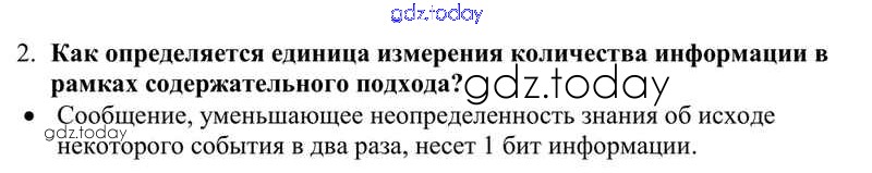 На страницах сайта gdz.today вы найдете учебный и вспомогательный материал, направленный на улучшения знаний школьной программы. ГДЗ - онлайн мир знаний Решение к §4. Измерение информации. Содержательный подход 2 Учебнику по Информатике для 10 класса Семакин, Хеннер Базовый уровень Бином 2017
