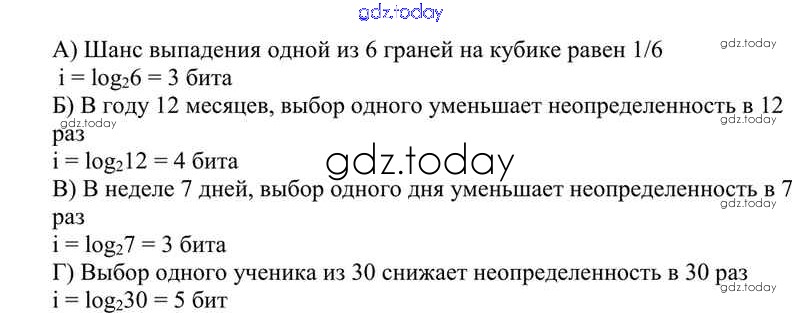 Ответы к Решение к §4. Измерение информации. Содержательный подход 8 Учебнику по Информатике для 10 класса Семакин, Хеннер Базовый уровень Бином 2017