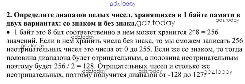 На страницах сайта gdz.today вы найдете учебный и вспомогательный материал, направленный на улучшения знаний школьной программы. ГДЗ - онлайн мир знаний Решение к §5. Представление чисел в компьютере 2 Учебнику по Информатике для 10 класса Семакин, Хеннер Базовый уровень Бином 2017