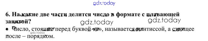 На страницах сайта gdz.today вы найдете учебный и вспомогательный материал, направленный на улучшения знаний школьной программы. ГДЗ - онлайн мир знаний Решение к §5. Представление чисел в компьютере 6 Учебнику по Информатике для 10 класса Семакин, Хеннер Базовый уровень Бином 2017