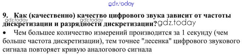 На страницах сайта gdz.today вы найдете учебный и вспомогательный материал, направленный на улучшения знаний школьной программы. ГДЗ - онлайн мир знаний Решение к §6. Представление текста, изображения и звука 9 Учебнику по Информатике для 10 класса Семакин, Хеннер Базовый уровень Бином 2017